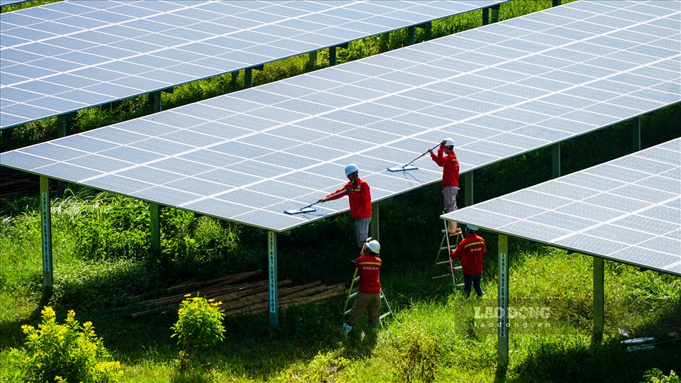 Cận cảnh thung lũng điện mặt trời dưới chân Thiên Cấm Sơn